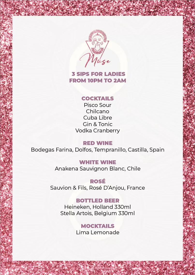 Step into the allure of Manko Muse, a night inspired by the elegance and energy of women. Enjoy captivating music, crafted sips, and a vibrant atmosphere. Ladies enjoy unlimited drinks from 10 PM to midnight.
